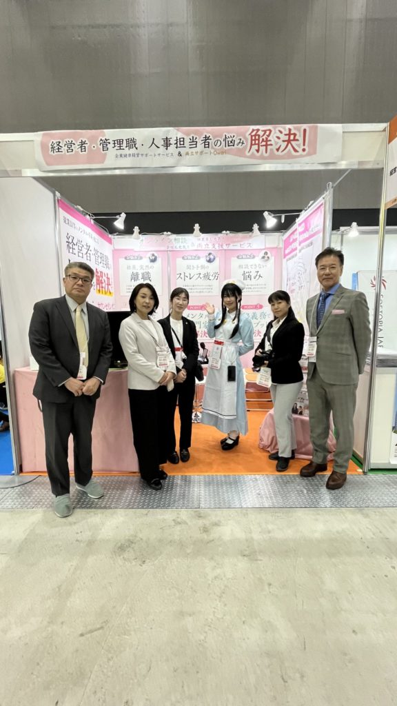 当ブースでも、経営者・人事担当者・産業保健スタッフなど多様な立場の方々と意見交換を行い、「社員のメンタル不調に早めに対応したい」「離職を防ぐための体制を作りたい」という声が多数寄せられました。特に、企業規模が50名以下の中小事業所では、メンタルケアや両立支援の担当者が不足している現状が浮き彫りとなりました。私たちは、そうした企業に寄り添うオンライン相談・研修・制度設計サポートを通じて、実践的な支援を今後も進めていきます。
